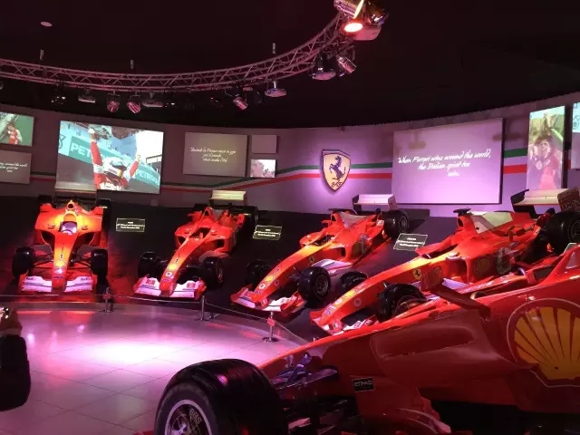 法拉利博物馆分成多个主题区,每一个区域都按照赛车爱好者和古董车专业鉴赏家的期望而设计:F1区域、运动型跑车及原型运动型跑车区域及GT跑车区域。为了庆祝法拉利车队近几年取得的胜利,今年博物馆设立了“胜利之殿”展厅。在“胜利之殿”中您将看到自1999年至2008年世界冠军赛车的概况以及超过110座奖杯和法拉利9位历代冠军车手的头盔。