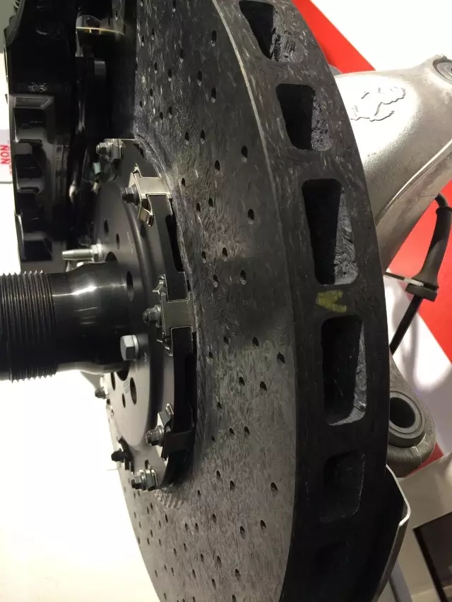 作为率先使用碳陶瓷的F1赛事用车,此次我们还看到了brembo为法拉利代工的碳陶瓷刹车碟。