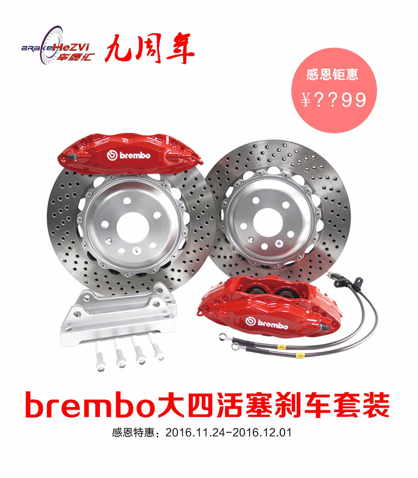 【9周年店庆,感恩钜惠】车质汇9周年,感恩回馈。即日起至2016年12月1日期间,仅限购买以下图片型号产品享优惠,本活动只针对改装店家单位开放(凭营业执照+门店照片享受优惠)。成功购买刹车产品的店家同时可获赠品牌精美海报,数量有限售完即止。店庆活动结束,下述产品即恢复原价,车质汇享有最终解释权!