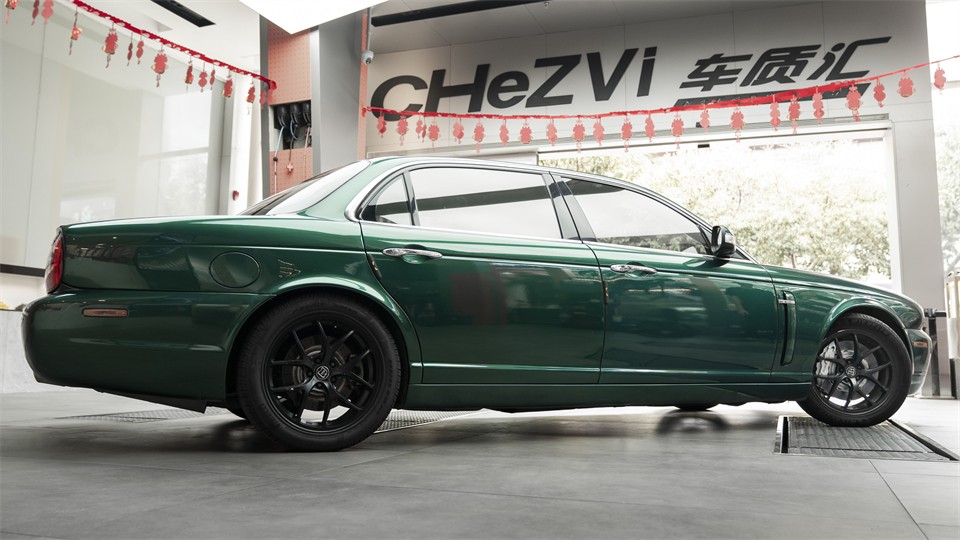 由于在国内保有量不高,第三代XJ升级刹车的案例非常少,本期这部XJ的车主选择了“英国老家”的品牌,且同样小众的选项)Alcon CAR97+六活塞刹车套件。稳定可靠,脚感线性,外形经典又复古,完美符合XJ气质。