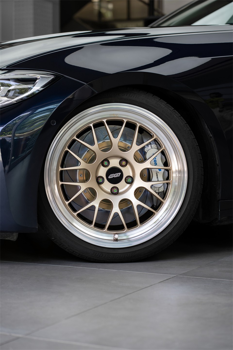本期这部3系可以称之为轻改里的范本之一,干净的外观,简单升级避震和淡金色抛边轮毂,让整部车看起来素雅且高级。搭配一套银色Alcon CAR97+六活塞刹车套件,更加简约内敛,精致独特,轻奢小资。