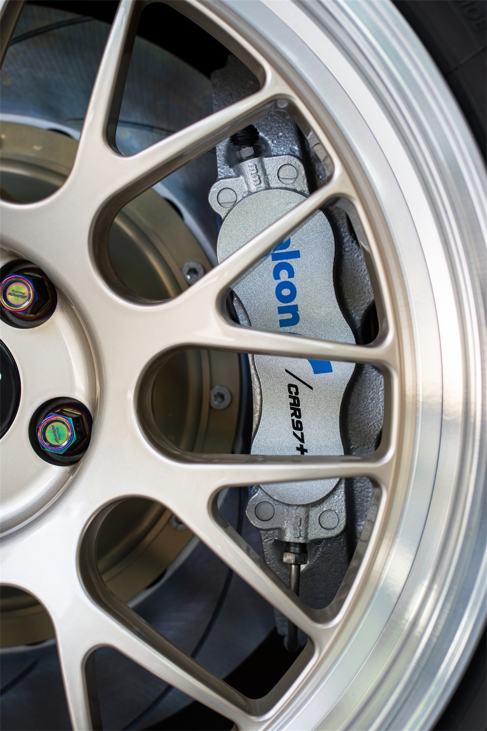 Alcon CAR97+/98+是Alcon旗下的经典系列,采用一体铸造设计,最大的特点就是轻量化和稳定性。在延续CAR97/98脚感线性优势的同时,卡钳本体升级为全新铝材,重量进一步减轻。CAR97+六活塞卡钳重量仅为3.05kg(CAR97 3.55kg),CAR98+四活塞卡钳重量仅为2.95kg。同时,通过对内部细节进行优化设计,使之可搭配尺寸范围更广的刹车碟。活塞升级为钢制竞技散热活塞,在连续制动情况下表现更稳定。